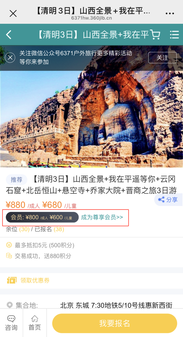 如果长期参加我们的户外活动,或者初次报名多人的话开通尊享会员非常值,可享受很多优惠。