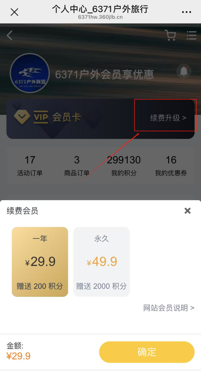 ②方法二:进入用户自己的个人中心,点击顶部头像旁边的会员升级链接,升级成为网站会员;