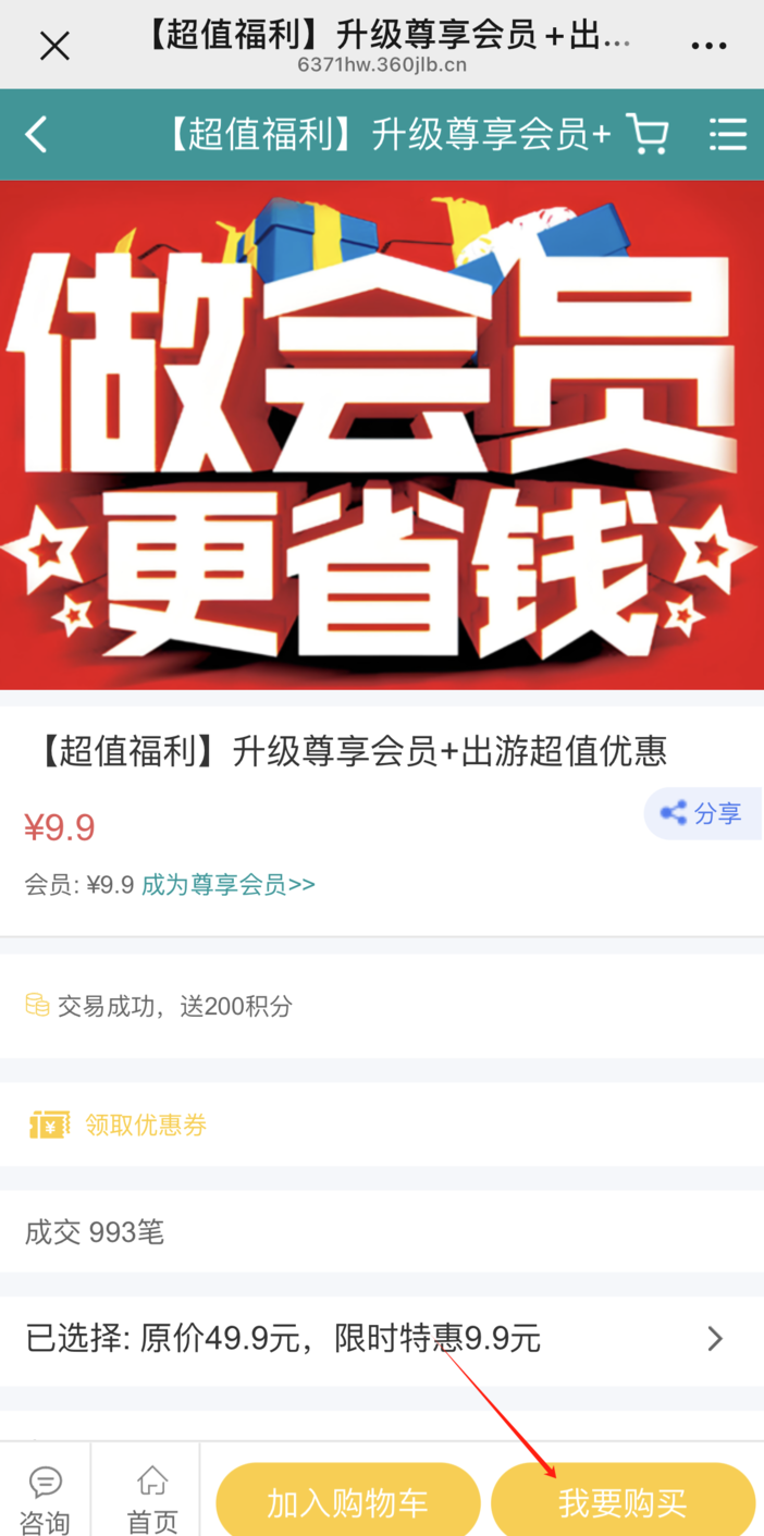①方法一:限时特价,本页面9.9元下单填写本人账户(手机号);管理员后台直接为您升级为价值49.9元的尊享会员;