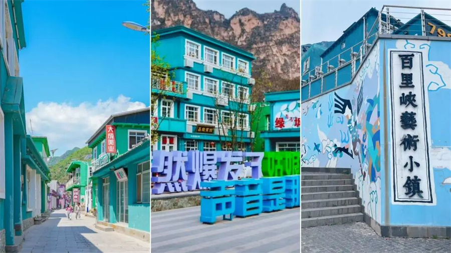 百里峡艺术小镇百里峡艺术小镇在明快的色彩背后,是苟各庄村民们世代而居的家乡,烟火气息浓郁。不仅有各色的乡间小吃,还有多种民间特产,泥塑、崖柏栩栩如生,游客可放松脚步在小巷中随意游走,也可以在一家小馆内休息片刻,享受静谧时光。
