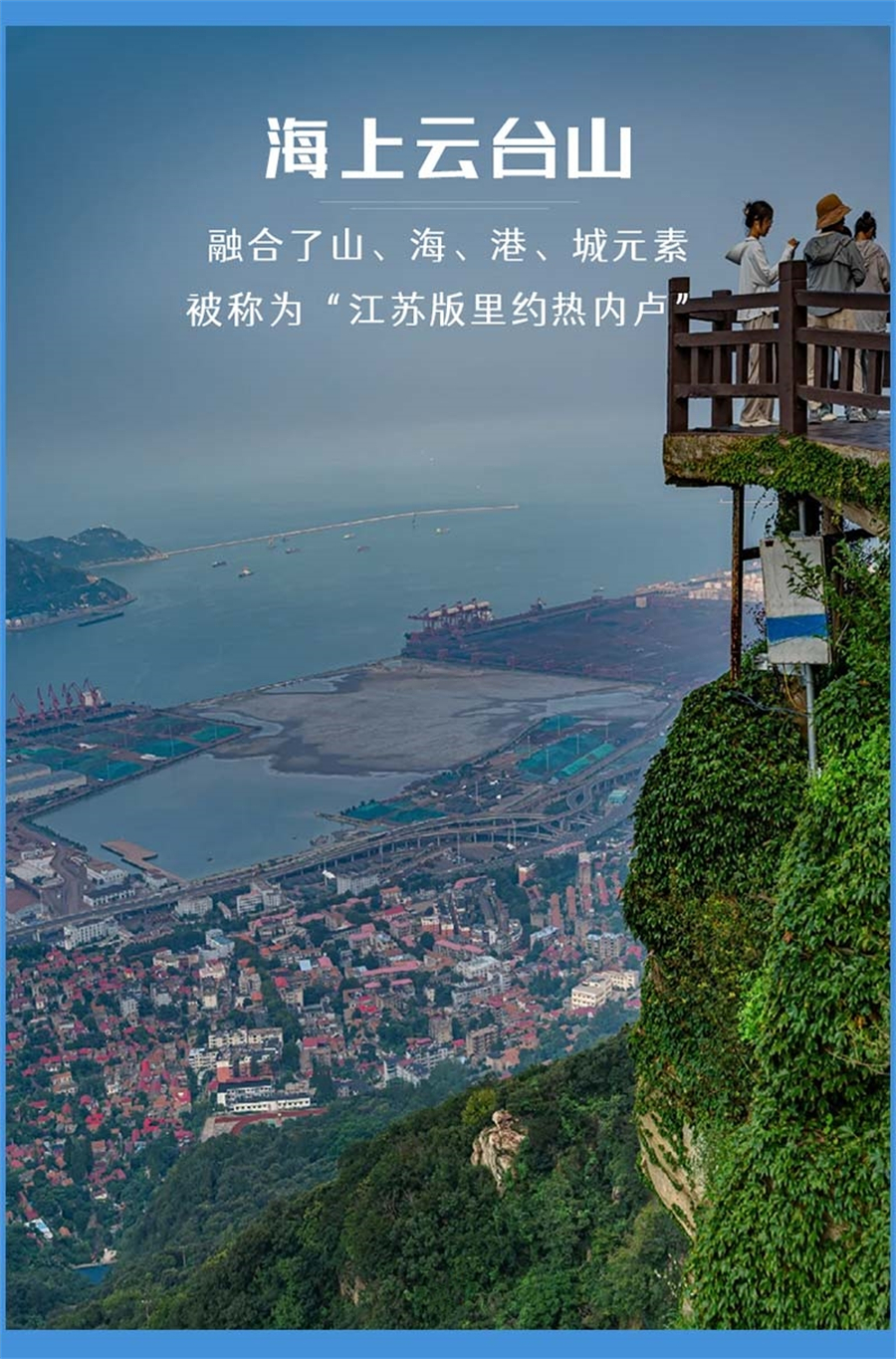 早餐后前往海上云台山游览,这里融合了山、海、港、城元素,被称为“江苏版里约热内卢”。