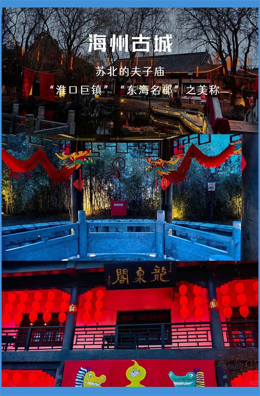 晚上自由结伴前往海州古城、民主路老街、盐何巷等地欣赏夜景品尝美食!