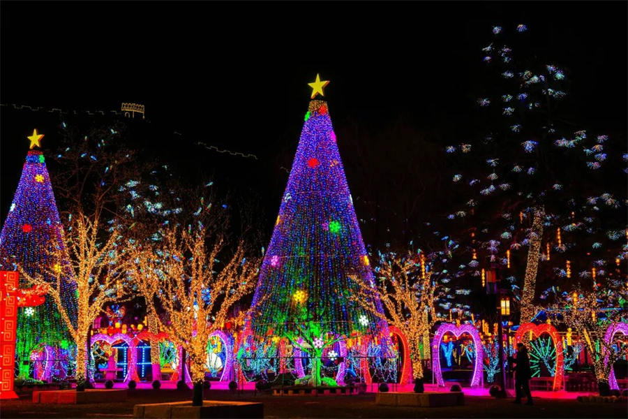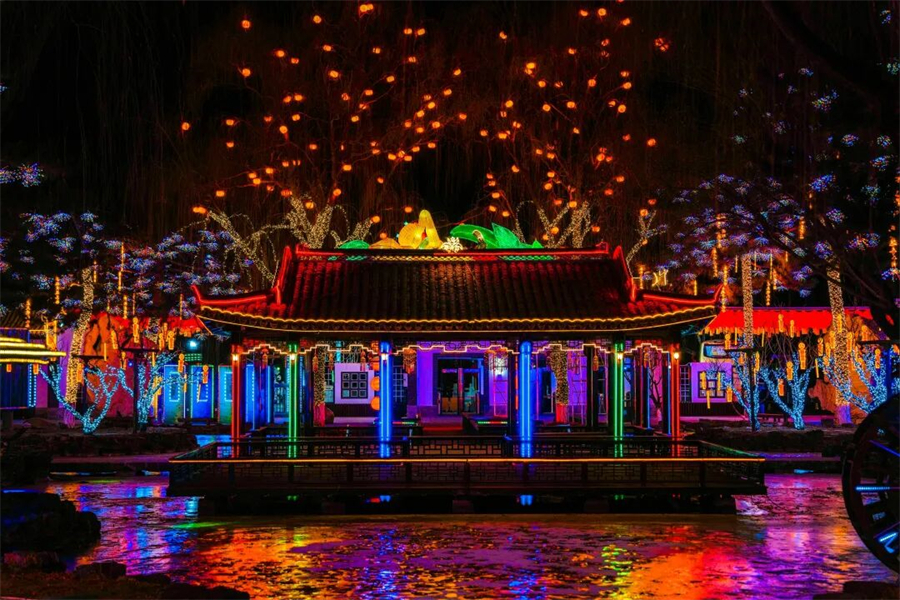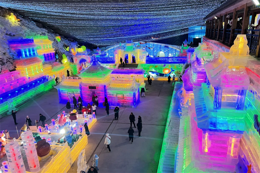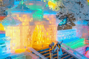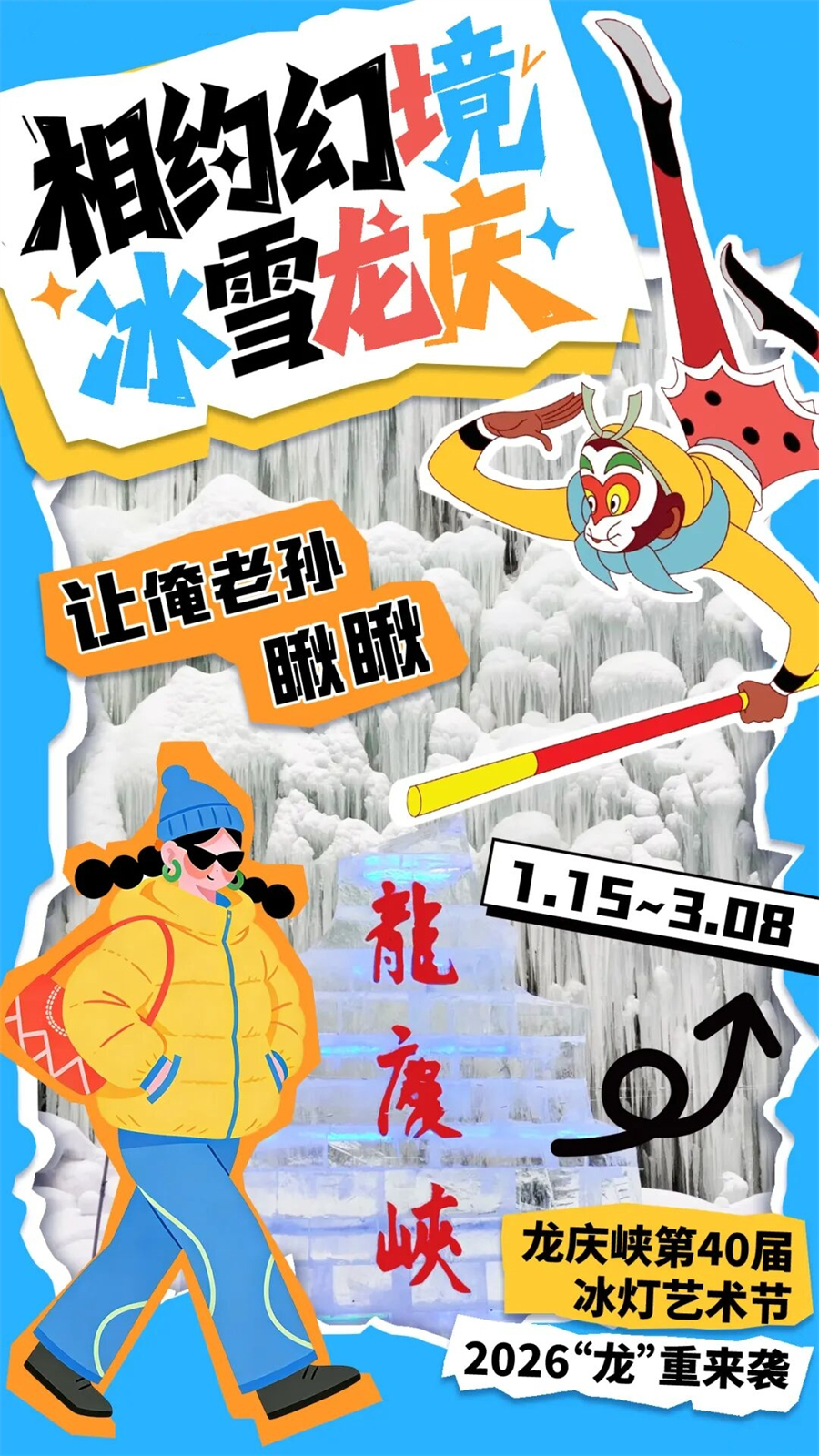 2)前往 “龙庆传奇・灯映山河” 亮花灯观赏区,欣赏传统彩灯与现代光影科技交织的美景。接着前往 “致敬经典・传奇再现” 冰雕艺术区,感受 “大闹天宫” 主题冰雕的魅力。