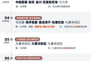 【行程概述】早餐后前往人间仙境、童话世界【九寨沟景区】游览,进入景区后换乘景区观光车(淡季80元/人,费用自理,必须乘坐),沿途欣赏九寨沟的绝美风光。九寨沟主体呈“Y”字形,由【树正沟】、【日则沟】和【则查洼沟】三条沟组成,总长50余公里。
