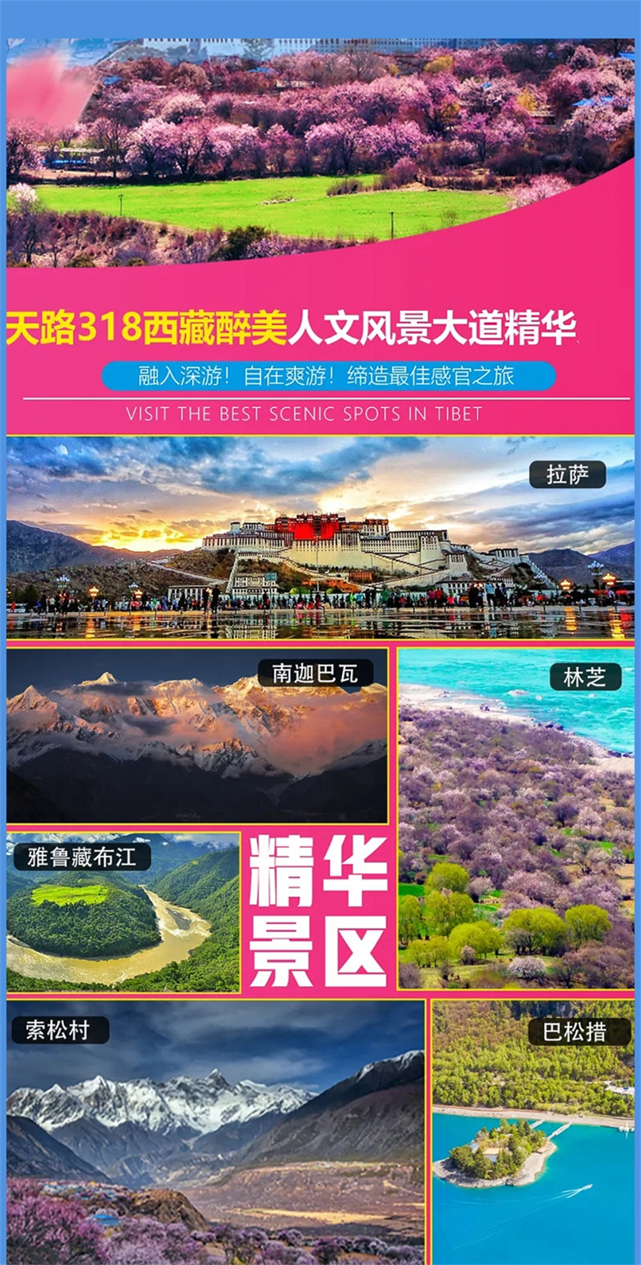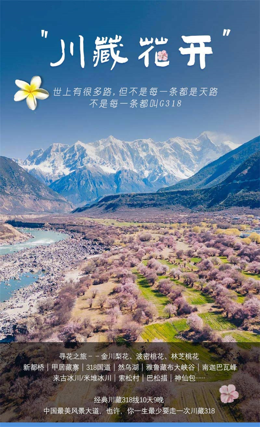 1、318国道被誉为中国人的景观大道,其中川藏南线一段更是精华中的精华,在灿烂春日,鲜花盛开的季节,“成都-金川-丹巴-林芝-拉萨”,这条路线足够惊艳。