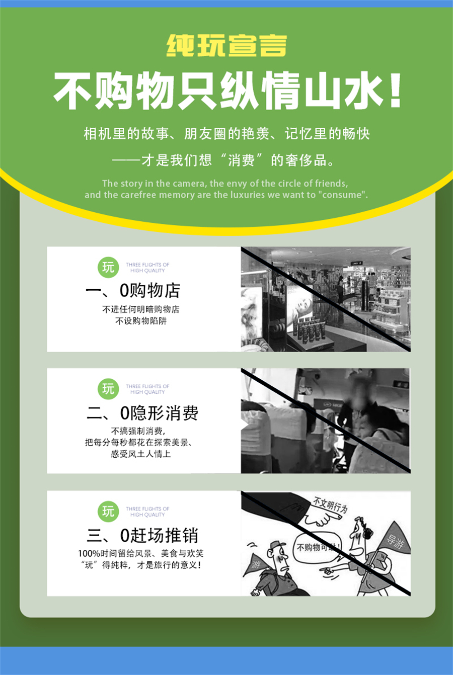 12、请遵守国家和地方的法律法规和有关规定,不在旅游行程中从事违法活动,举止文明,不在景观、建筑上乱刻乱画,不随地吐痰、乱扔垃圾;遵守公共秩序和社会公德,尊重当地的饮食习惯、习俗禁忌、宗教礼仪等;活动行程中遇到问题请及时寻求领队帮助,切勿与他人发生争执;若因个人原因引发矛盾导致自身或者他人受到人身、财产损害,组团方不承担任何形式赔偿,但应积极配合行政机关调查取证。