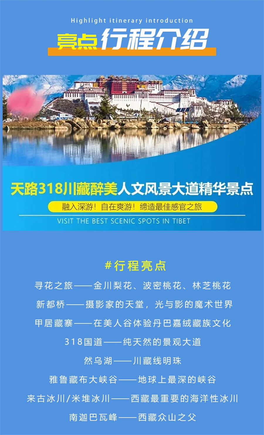 西藏 拉萨 3月28-4月6号【川藏花开】清明假期+北京直发+川西梨花+林芝桃花+波密桃花+经典川藏318线10