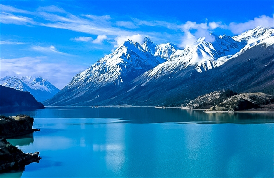 如果说上天把蓝天白云全部给了 西藏 ,那 西藏 一定把最蓝的水给了然乌湖。尤其那湛蓝的湖面,仿佛是上天遗忘在人间的一面镜子,有“西天瑶池”的美称。河道中许多岩石和小岛点缀其间,湖面上春季树影婆娑秋冬薄雾弥漫,四季美景都会使人如进梦幻之境。