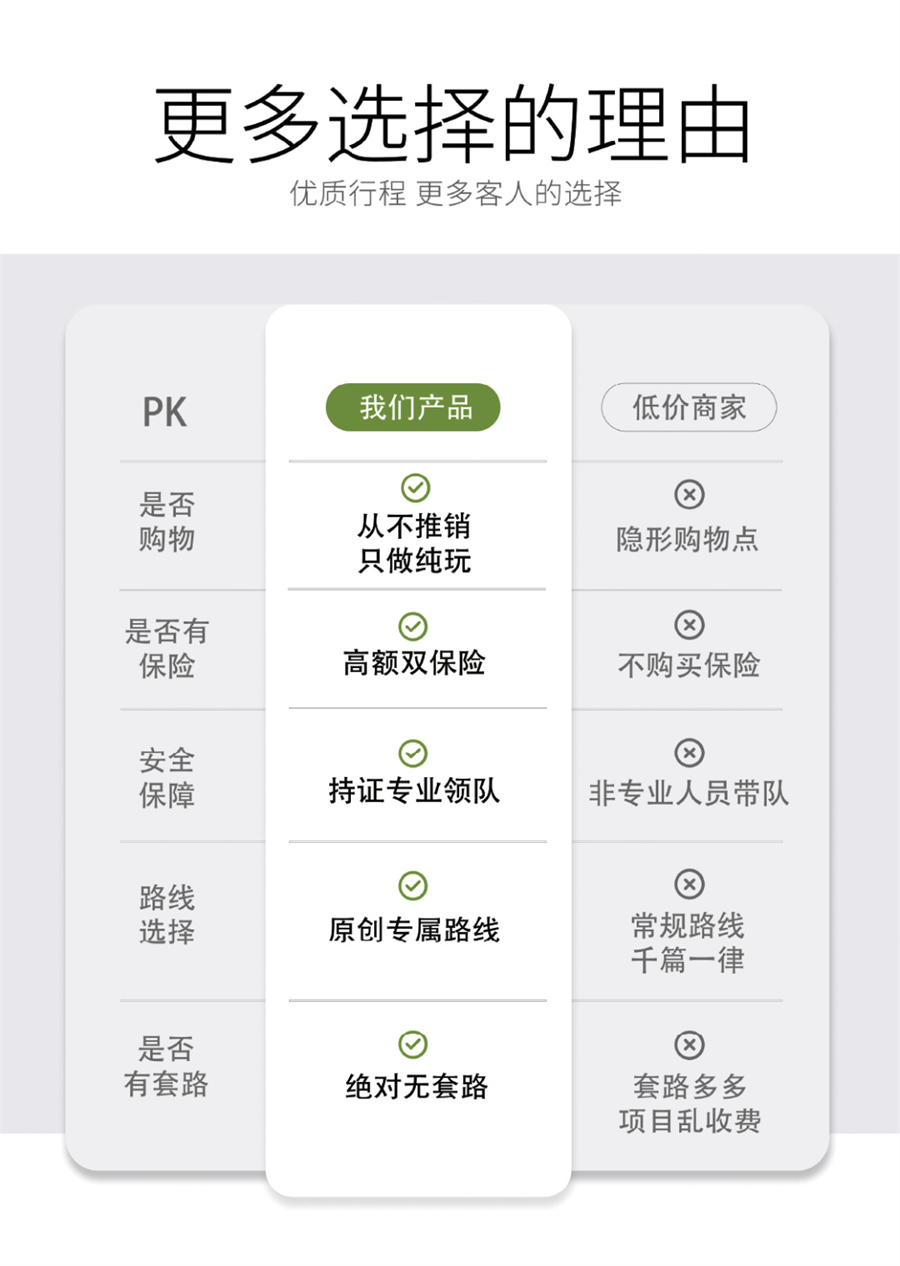 3、成团说明:如因参团人数未达到发团人数则取消当期活动,活动出行前提前通知并全额退款,积极为游客推荐类似路线或拼团。