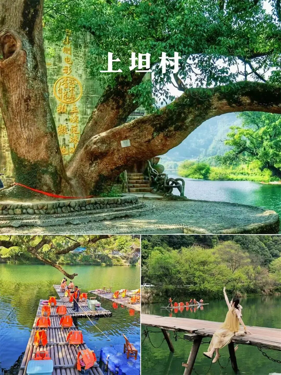 上坦村|电影《我不是潘金莲》取景地秘境古村,这个藏在山间的隐秘古村才是真正的人少景美、岁月静好,村口那棵千年古樟树,仿佛在静静诉说百年故事,白墙黛瓦的老宅 斑驳的墙面 古朴的木门,每一处都是时光的痕迹,坐在竹筏上缓缓漂流,清澈的河水倒映着青山与老屋,仿佛闯入一幅静谧的江南水墨画。