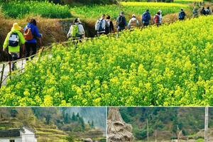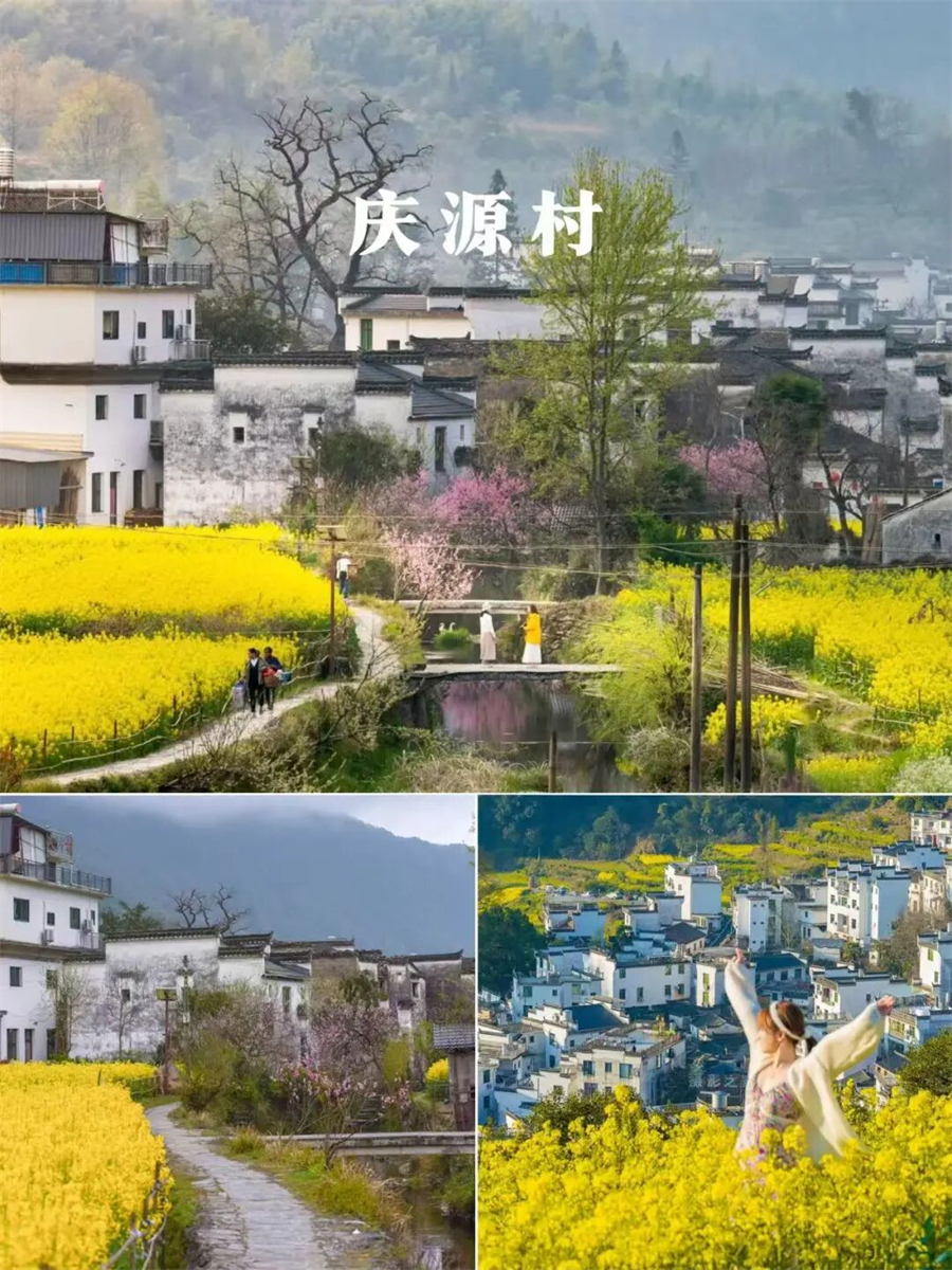 庆源村油菜花、梨花和桃花同时盛开,把庆源人家笼罩在一派“金山、银海、胭脂云”的景象之中。