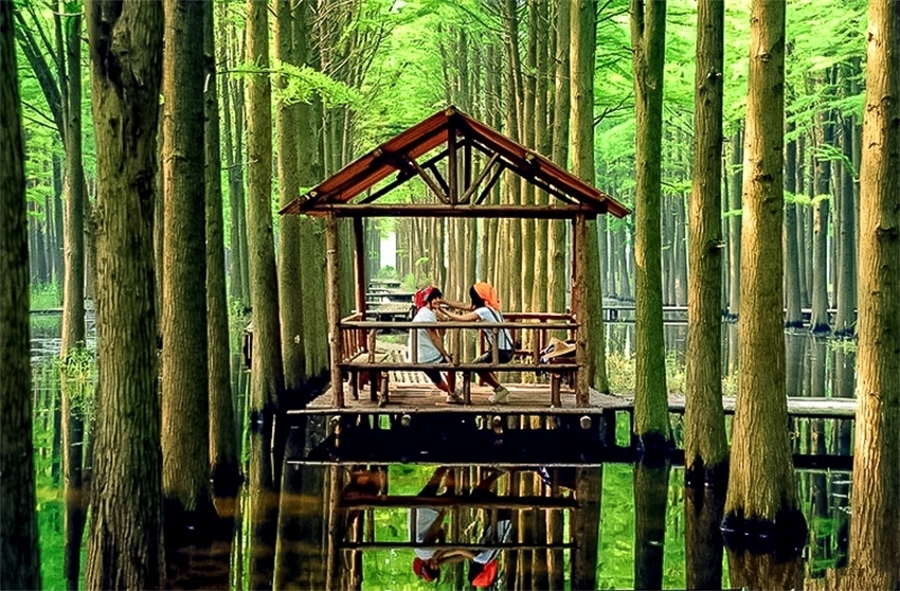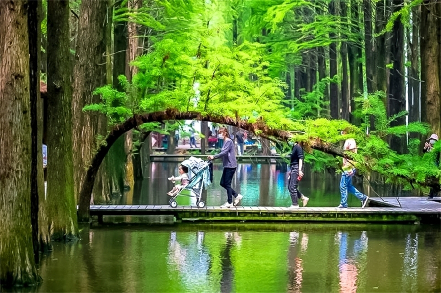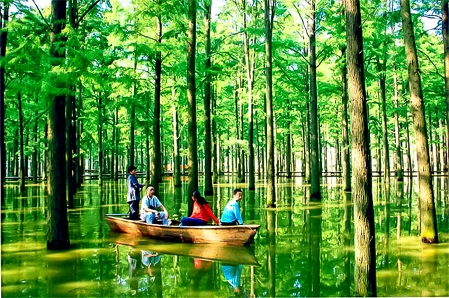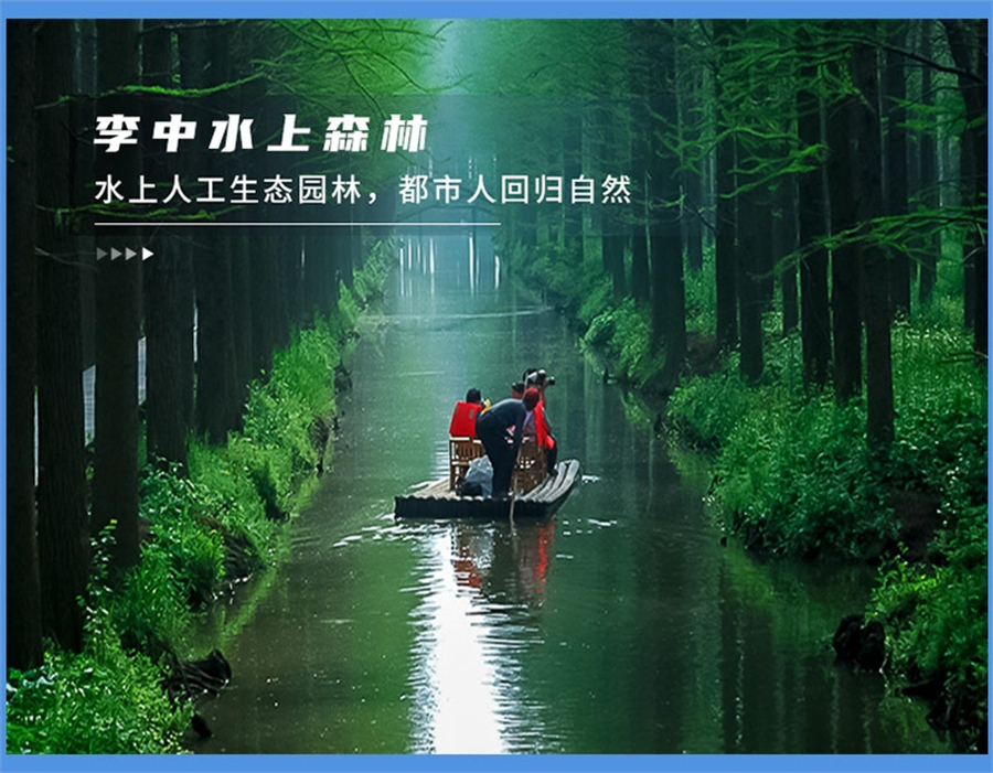 下午|游玩李中水上森林,可以乘竹筏穿越水上森林,也可以悠闲地沿湖徒步。(*注:如因交通、兴化客流量等原因,次景点有可能取消直接前往扬州!)