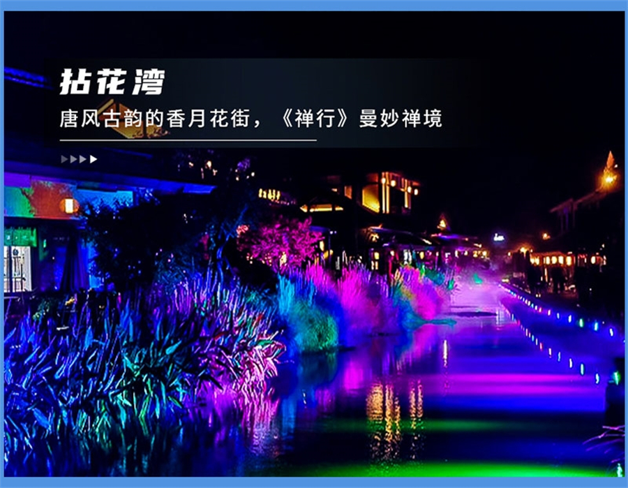 拈花湾位于江苏无锡云水相接的太湖之滨,秀美江南佛光普照的灵山之畔。这里集翠隐秀、聚精会神、云水天地、气象万千。倡导“慢下脚步 好好生活”,打造最具东方文化内涵的简单、健康、快乐的东方度假生活。在唐风古韵的香月花街,赏美景、尝美食,享受慢调时光;到了夜晚,华灯初上,观看一场精雕细琢的文化盛宴——《禅行》演出,在空灵明净的禅意世界,感悟“一花一世界,一叶一如来”的曼妙禅境。