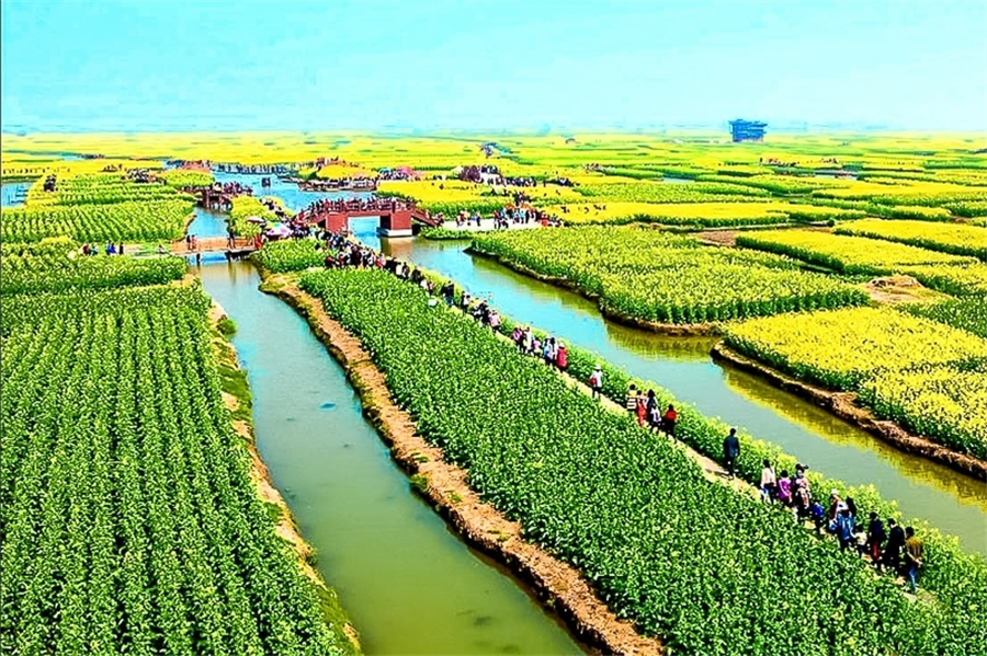 早上|我们继续乘坐大巴前往兴化,约中午到达,欣赏沿路江南水乡的风景,我们首先游览千岛油菜花海。