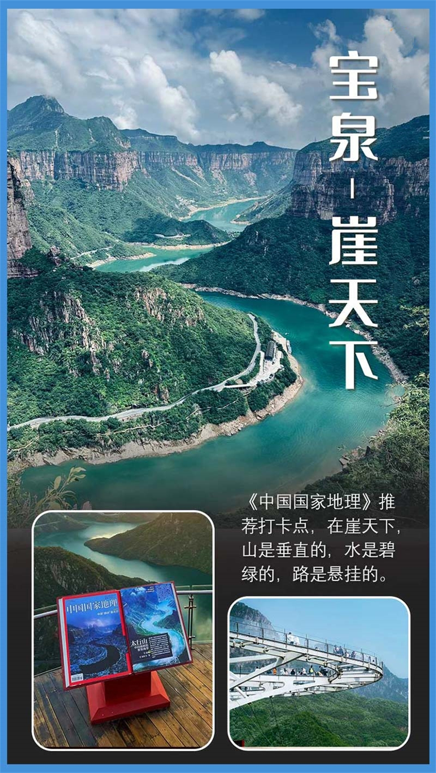 D2|鹤壁-宝泉旅游区(崖天下-大峡谷)-新乡夜景-新乡(宿)早上我们继续出发前往《中国国家地理》推荐地【宝泉旅游区】游览。景区分为崖天下和大峡谷两个区域,我们先游览崖天下:游客中心-摆渡车-洛伽寺索道-丹崖天路-太行之心-崖乐园-宝泉之春-天镜-跃云桥-挂壁长廊-祥云观景台(悬崖漫步需提前预约)-摆渡车-洞穴电梯;之后游览大峡谷:聚龙广场-玉女瀑-飞龙瀑-见龙瀑-摆渡车-桃花坪-宝泉号-七坝-摆渡车-游客中心。!宝泉崖天下,以崖惊天下,既有荣登《中国国家地理》杂志封面的中国曲峡游龙湾,又有惊险刺激的悬崖蹦极、悬崖秋千、悬崖飞拉达等悬崖挑战项目,被誉为“太行山里的蓝眼泪”、“一生必去的悬崖旅行”。宝泉大峡谷,赤壁丹崖、沟壑纵横,宝泉湖水碧波荡漾、一望无际。区内特有嶂石岩陡崖断层地貌形成了太行山密集壮观的瀑布群,高峡平湖、潭瀑相连,秘境丛幽。双龙瀑、见龙瀑、玉女瀑、飞龙瀑、青苔瀑,五步一潭,十步一瀑,形态各异的瀑布组成的“中华千瀑谷”堪称太行奇观,被誉为“中原瀑布群”。傍晚适时前往新乡安排入住。之后大家可以自由结伴欣赏夜景,品尝美食。推荐地:西大街、定国湖公园、卫河沿岸、网红撒哈拉书店等……