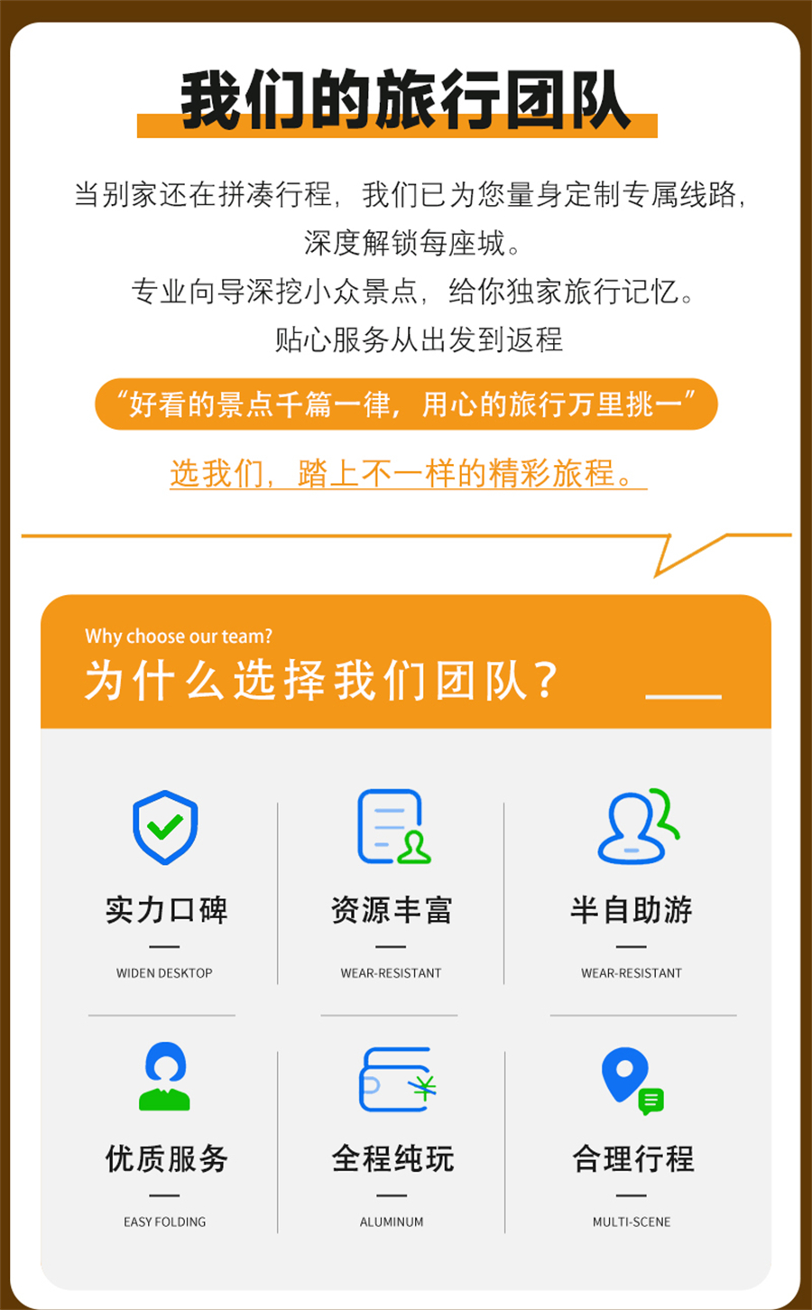 3、成团说明:如因参团人数未达到发团人数则取消当期活动,活动出行前提前通知并全额退款,积极为游客推荐类似路线或拼团。