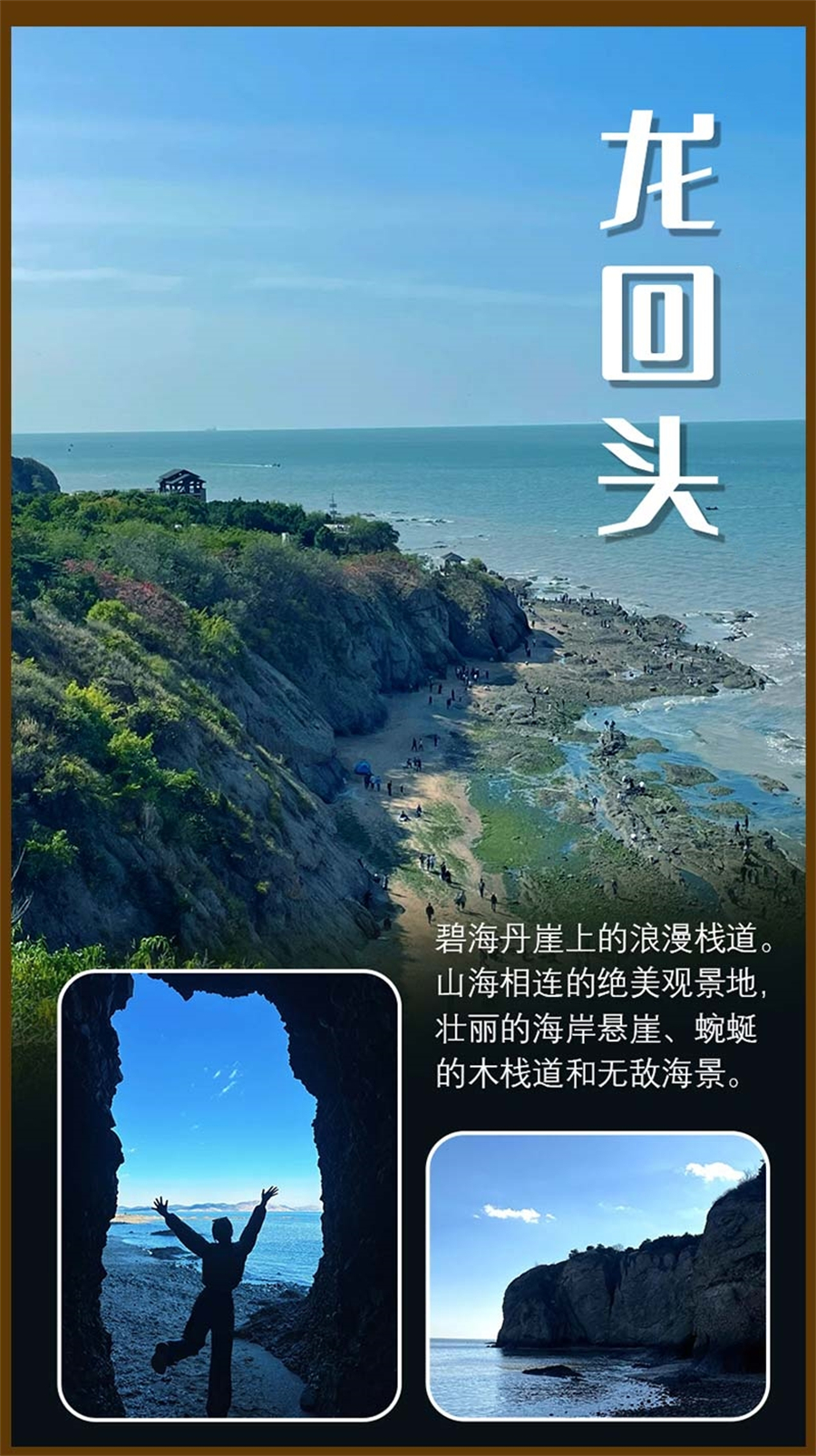 D2|兴城-龙回头-天路笔架山-奉国寺-锦州夜市-锦州(宿)喜欢看日出的自行早起前往海边欣赏日出,海边观赏辽东湾最美的日出(自行前往,费用自理)。早上|早餐后前往『龙回头』游览。行走在龙回头的景观台和木栈道上,周遭松涛起伏,这里高于海平面近百米,陡峭的悬崖下是澎湃的浪涛,远处海天相连,海滨浴场清晰可见,在这里能真正体会到大海的广阔。上午|适时我们前往神奇天路--笔架山,可以选择步行或乘船前往(视潮水情况而定,随着潮水退去,我们一步一步的追逐着海浪的脚印)。同时,一点点找寻着、渐渐露出水面的神奇的“ 天桥“。进入笔架山后,可以游览真人观、吕祖亭、五母宫、三清阁、盘古文化广场等景色!下午|适时集合前往『奉国寺』游览。这里不仅是肖战新剧《小城良方》取经地,还是电影《一代宗师》的取景地以及黑神话悟空东北唯一取景地!