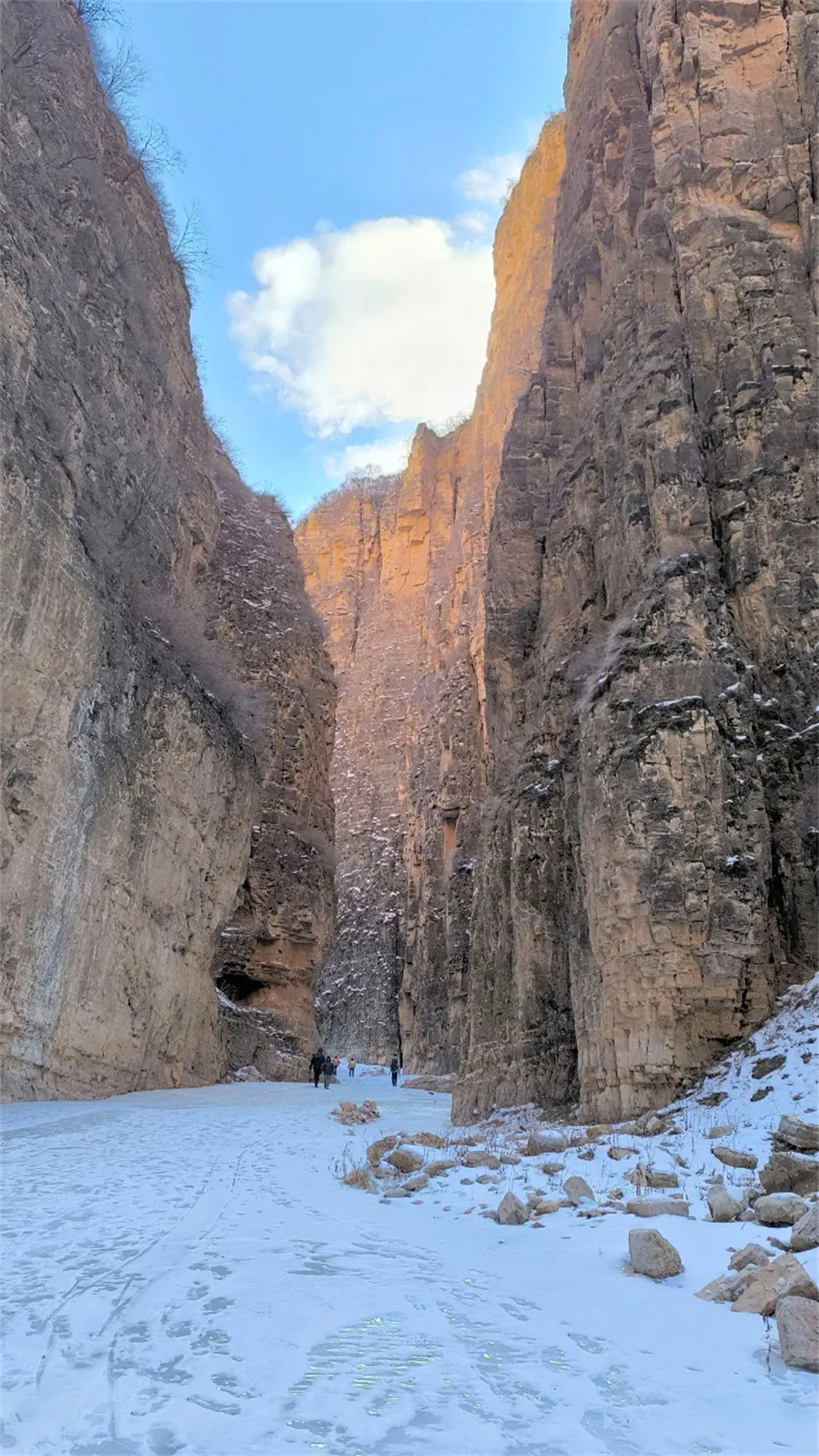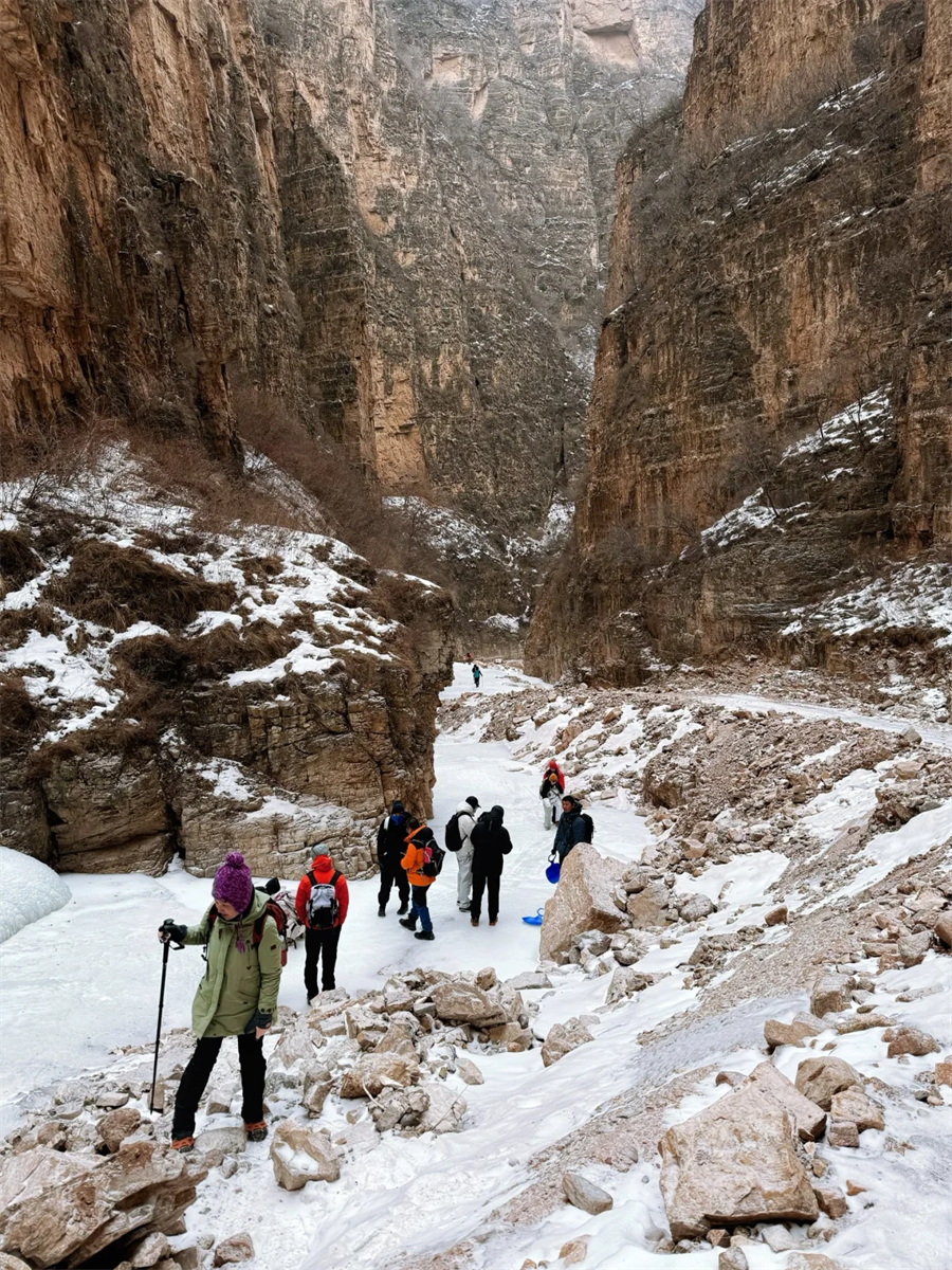 【活动亮点】蔚县水峪里峡谷是一条原生态峡谷,这里地形独特,峡谷幽深,蜿蜒曲折,抬头望去山峰高耸,尽是悬崖峭壁冬季溪流结冰如银河玉带一般平铺谷底,景色极美,可自带冰爪,滑板,体验峡谷冰川惊险刺激的冰上乐趣,在峡谷里踏冰走到尽头就是水峪里村,由于地势环境恶劣村里通车困难,现在村庄已逐渐破败,好像“真人版塞尔达之哈特诺堡垒”或许十几二十年后只有几块断壁残垣铭记着这里的人和事了吧。