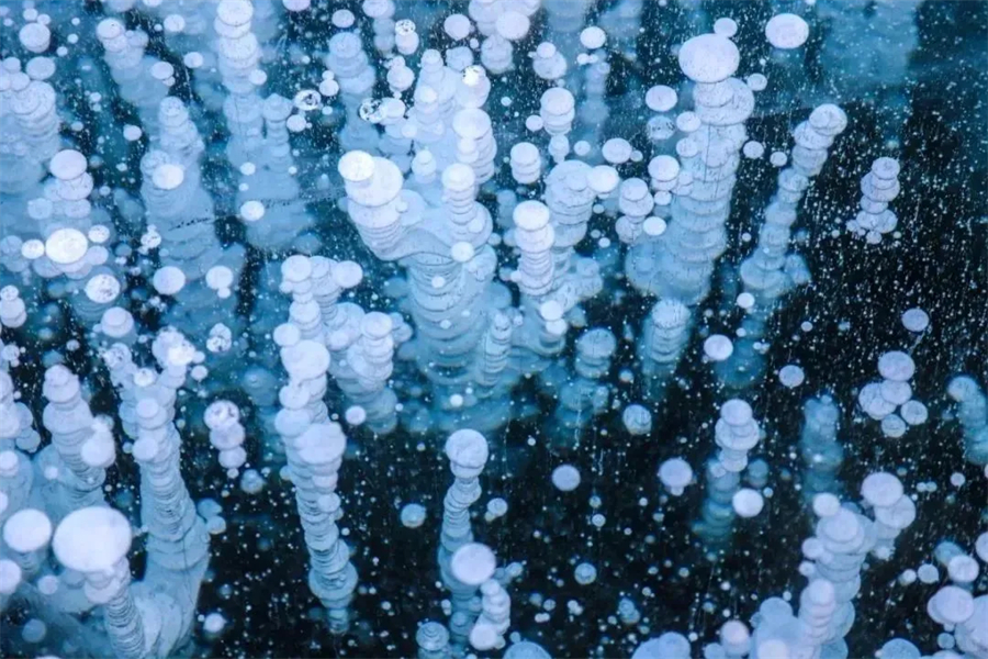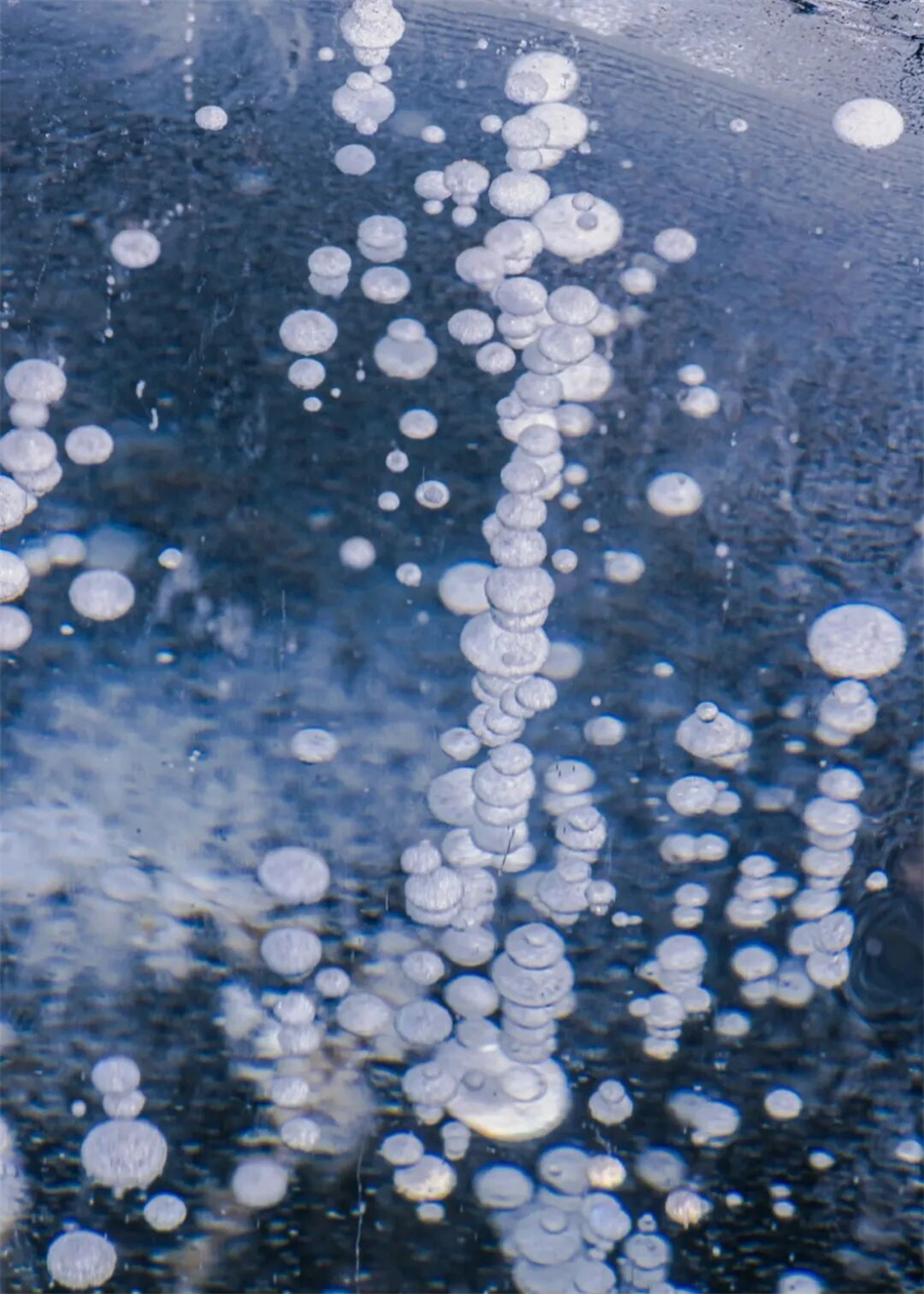 冬天的妫水河,太美了!蓝白相间的冰面和远处的芦苇,远山背景下的冰面,真实通透!北京的冬季,总有一些神奇的蓝冰气泡湖。那里一片片结了厚厚的冰,徒步可以进入。此处冰中镶嵌着气泡,有的大如蘑菇,有的小如米粒,重重叠叠,像是湖底呼出的气息,又像是藏在厚厚冰层的精灵,美轮美奂。冬天冰层冻的很结实,很安全,但很容易摔跤,大家可以尽情在冰面各种玩耍、拍照……