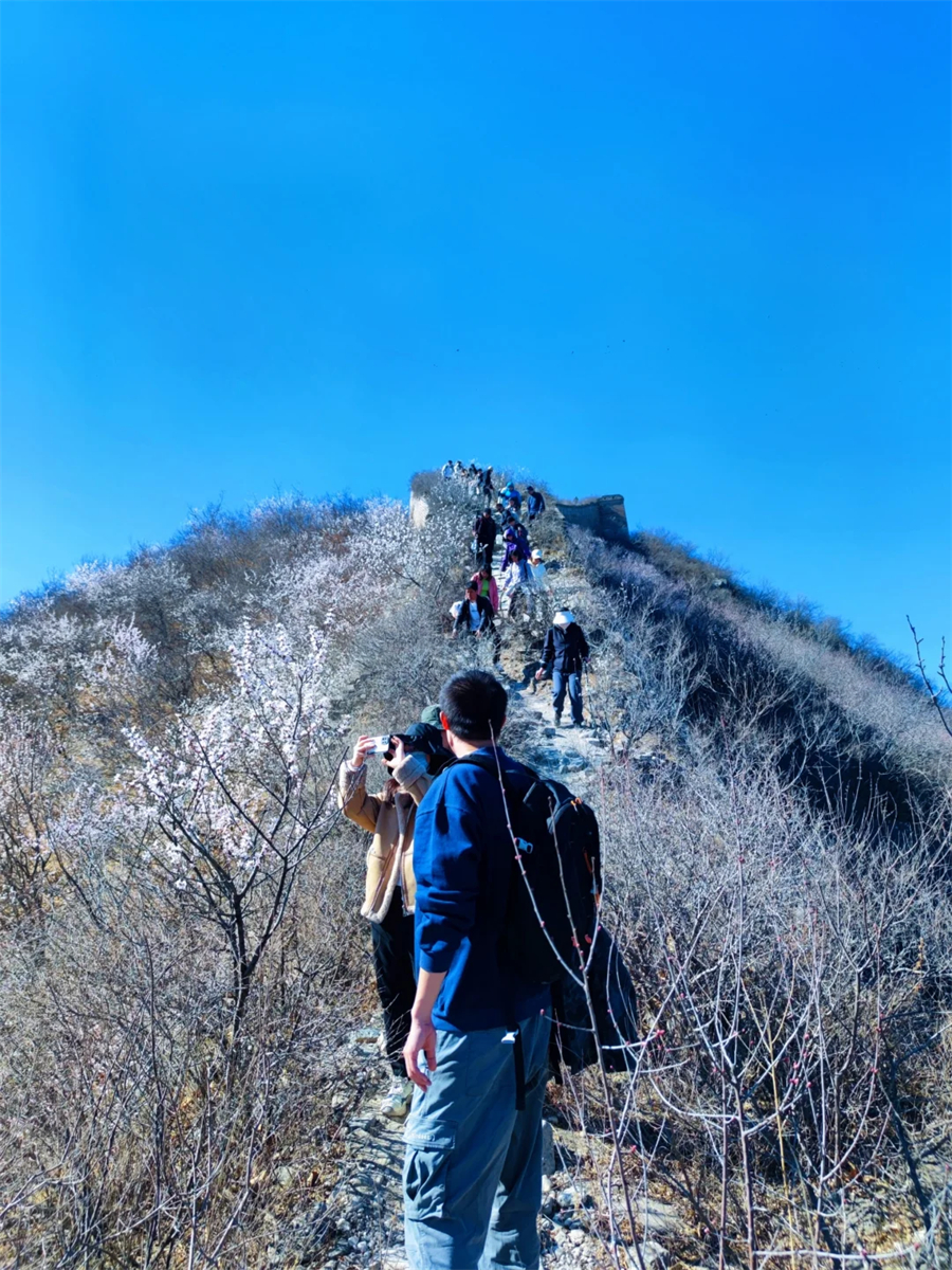 全程8KM游览拍照赏花,一路上大家相互协作,一路领略京郊大美风景,身处山花烂漫大山中,攀爬长城,俯瞰水长城碧波荡漾,切实感受户外带来的乐趣。沿途可以感受古村、山路、水长城、野长城,欣赏杏花、桃花。山花遍野,淡淡清香,古老长城,别有一番滋味。中午适时择地花丛下野餐。